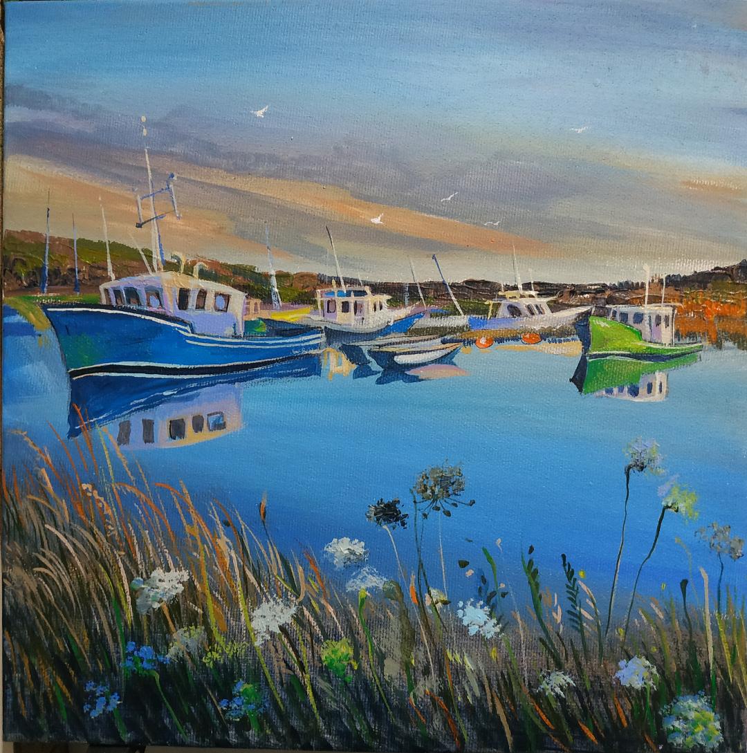 This small acrylic painting on archival-quality 1.5" canvas was inspired by a peaceful evening in Cape Breton, Nova Scotia. The bright and clean colors of the beautiful harbor create a meditative and relaxing atmosphere vibe. Painted on stretched canvas, with no need for a frame. A gorgeous sunset over the... Read more