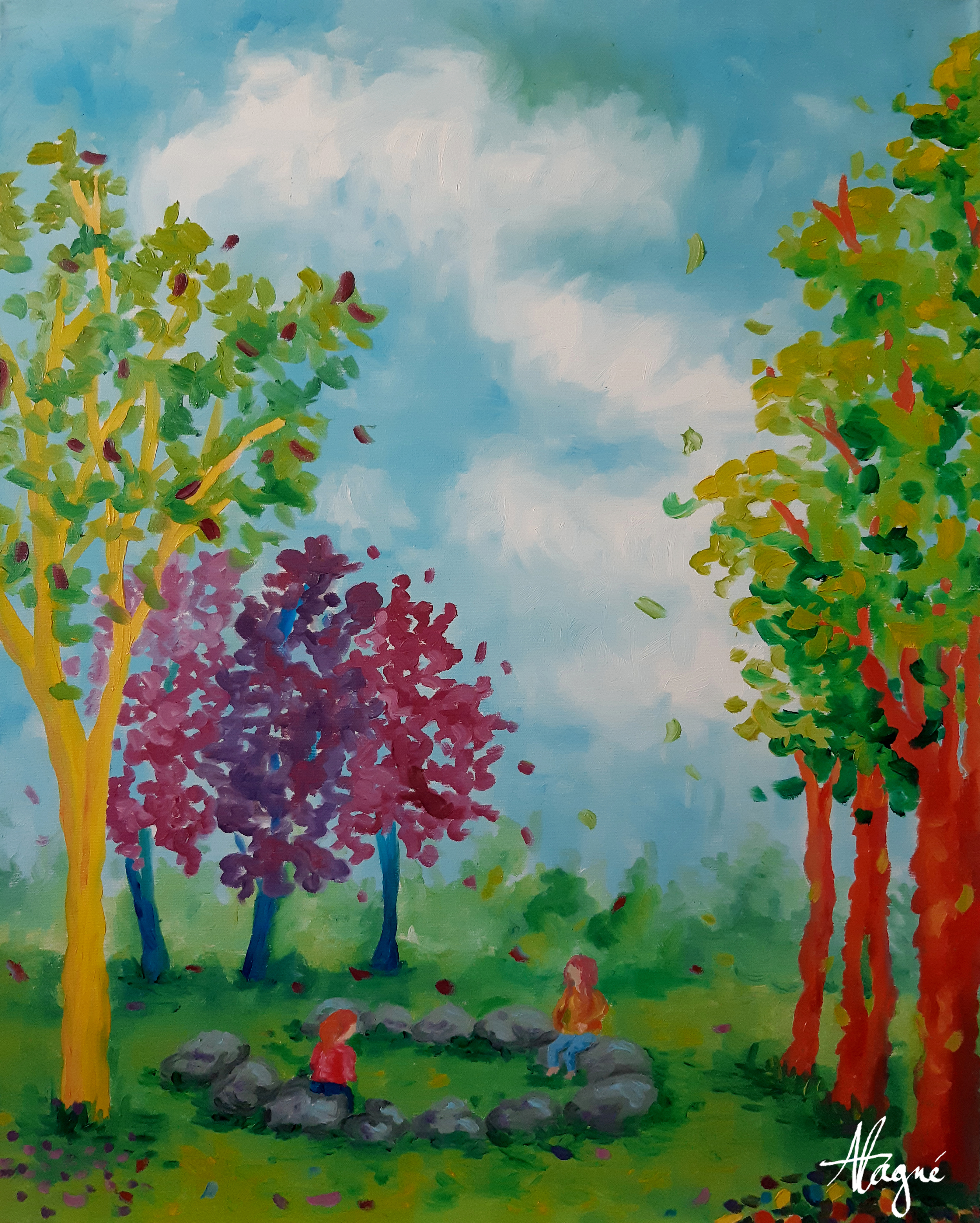 S'asseoir. S'écouter. Se parler. Sentir la texture de la roche sous ses paumes. Écouter les aventures que chacun.e. a vécu. Discuter d'idées pour changer le monde. Merci à vous, les arbres, pour veiller sur ses moments de réflexion.