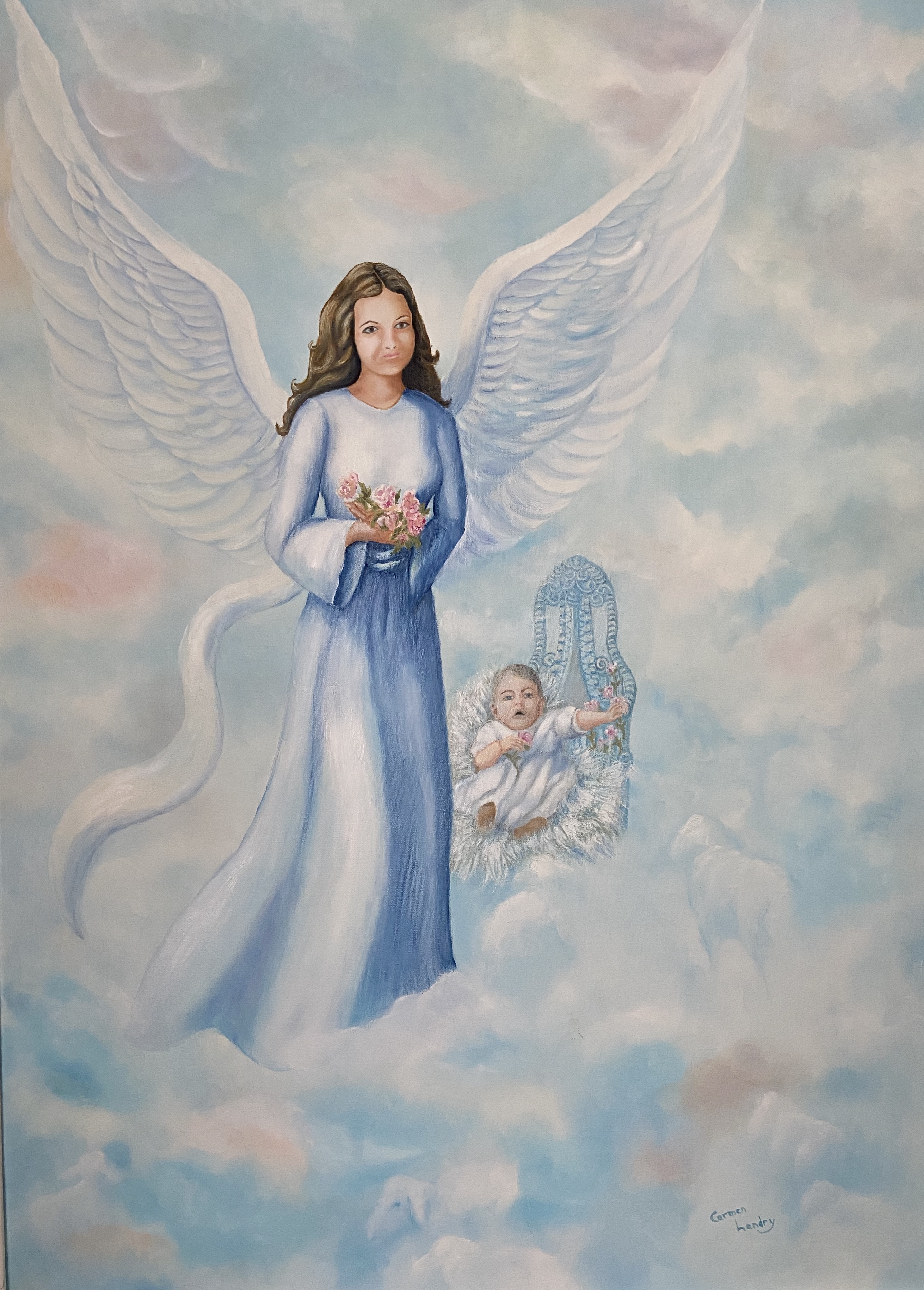 Des forces invisibles nous protègent, le symbole de la colombe apporte le bonheur et la paix. L'ange gardien apporte la protection et distribue des dons à chacun, On y voit des moutons près de l'enfant. Création unique ©Tous droits réservés. Invisible forces protect us, the symbol of the dove brings... Read more