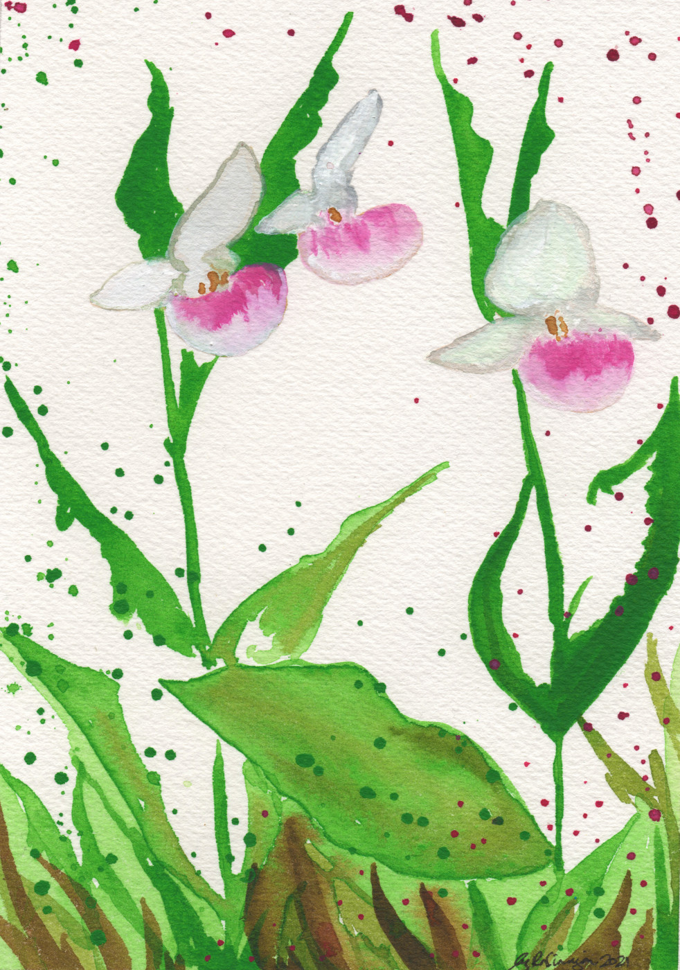 SLS-Lady Slippers, Watercolor on Paper. With Black Frame 9"(H) x11"(W) with White Matt 5"(H)x7"(W) A inspiration of the Lady slippers flower. Original artwork: Handmade by me (Earl Rina) Date: 2021 Signed: At the right and at the back of the paper with name, date, and title. Materials: Watercolor on Paper.... Read more