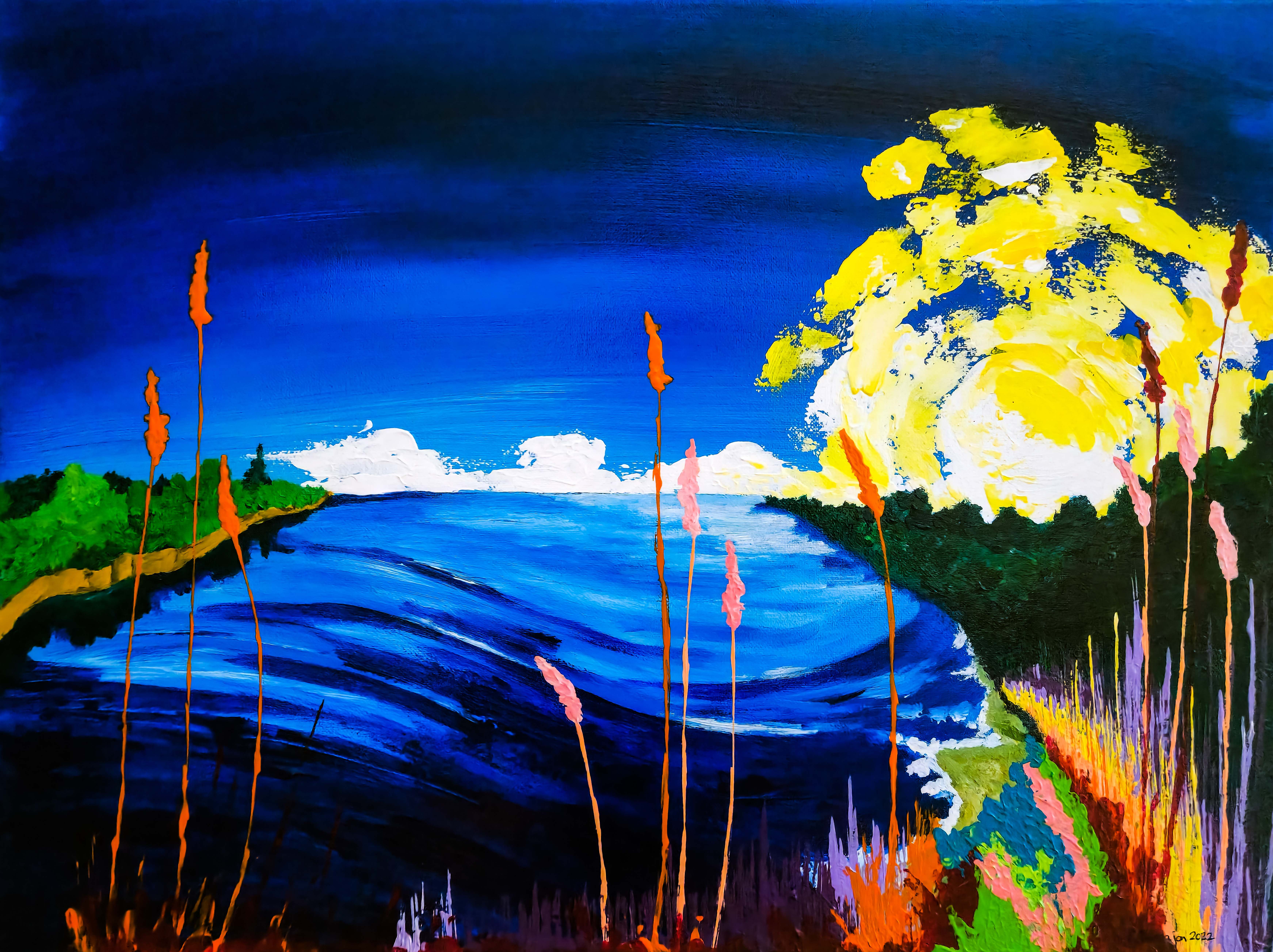 Earl Rina. "The Flow." 2022. Acrylic on Canvas. 18" x 24". I aim to show the connection between our daily encounters with our environment and the changing seasons. The beautiful nature of Canada in the prairies. The environment that my artwork aims to show is the beauty of the Prairie... Read more