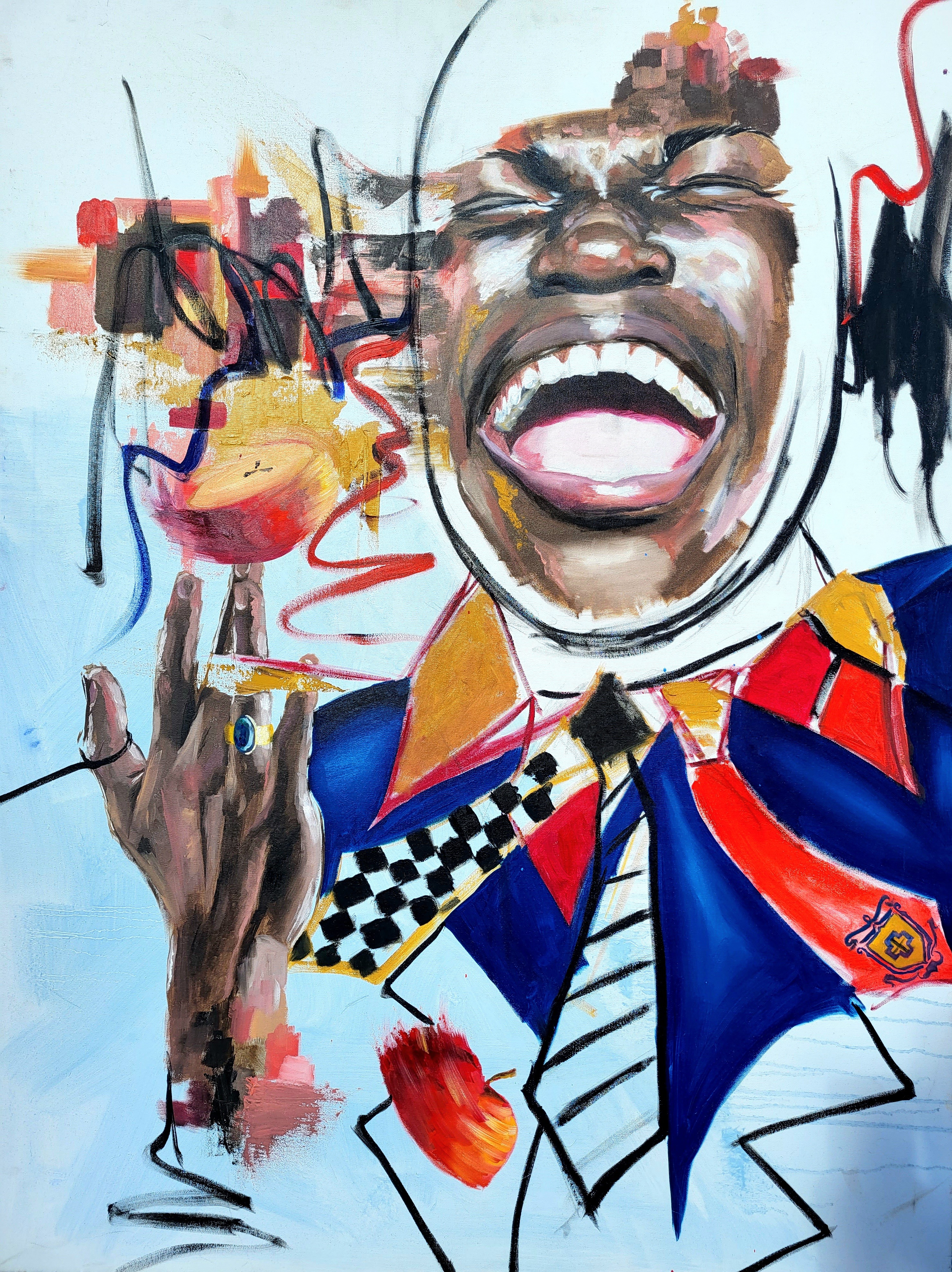 Inspired by the soul movement in the 1960s, this painting is done in oil on canvas.