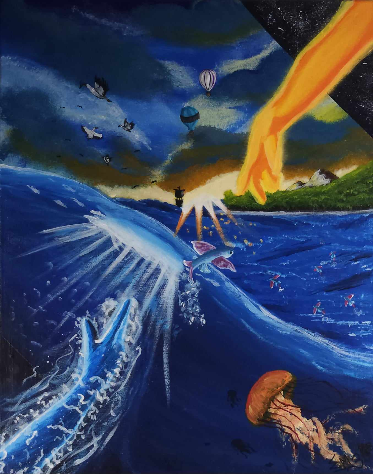 Un beau mélange de création, de la terre, la mer, le ciel, le cosmos, l'homme, les animaux, une symbiose entre chaque chose, avec toute leur difference, tous on leur raison d'être. Cette oeuvre originale est a l'acrylique, avec un vernis satiné, muni d'un cable a l'arriere pour l'accrocher. Signé en... Read more
