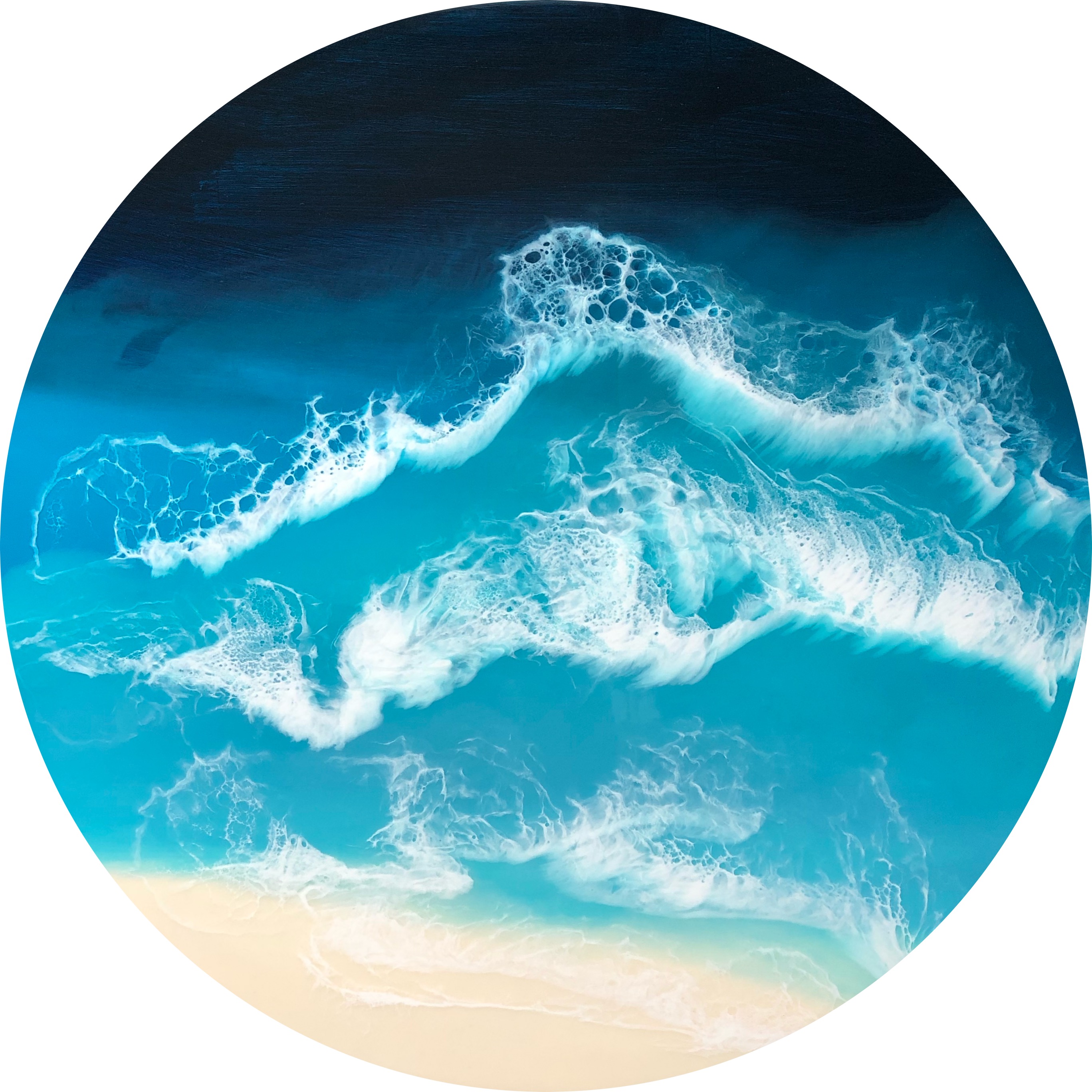 Resin on round piece of wood. This is an inspiration of aerial views of our planet.