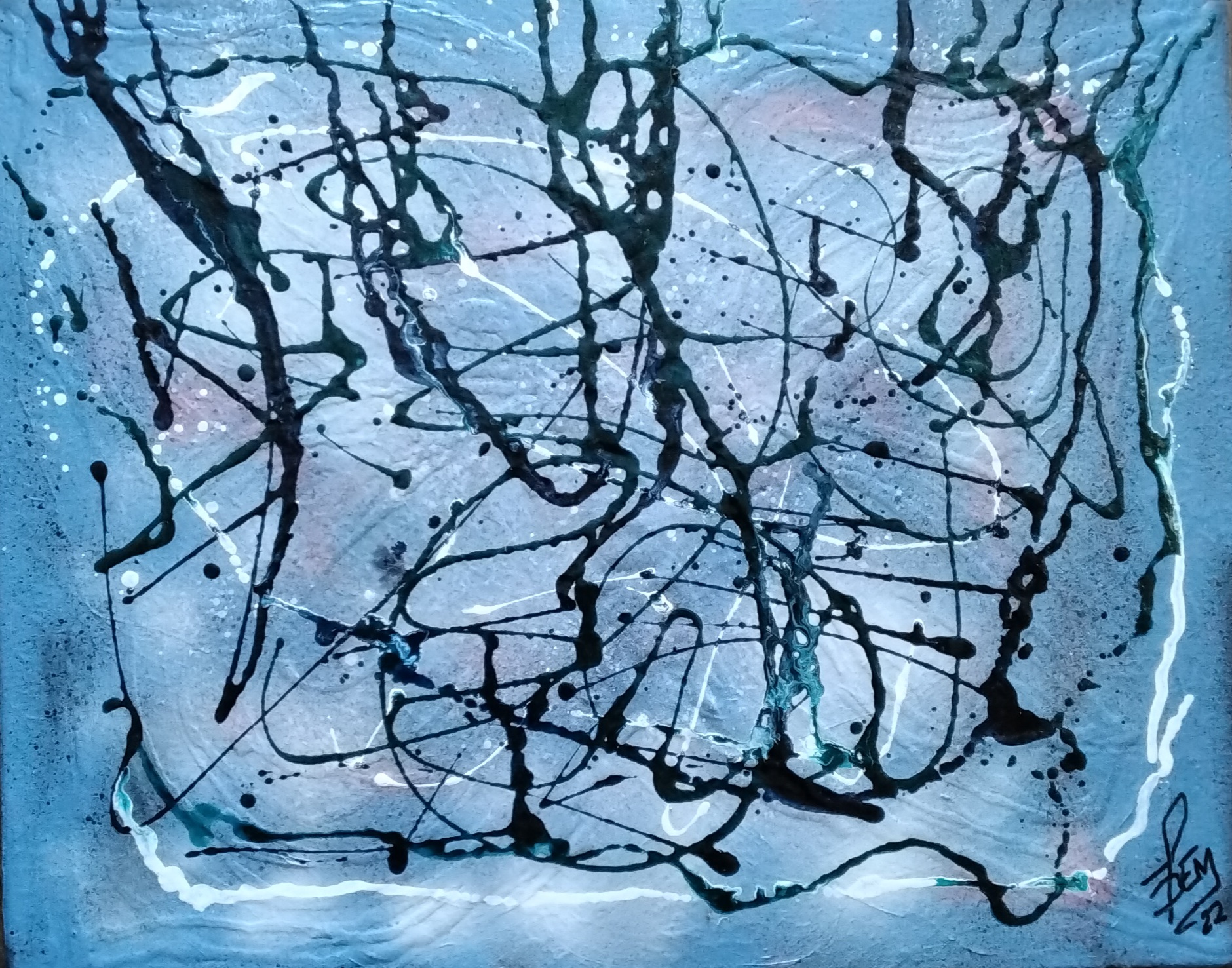 Pensées de l'artiste: bleu sur fond orangé comme une fin de journée d'été