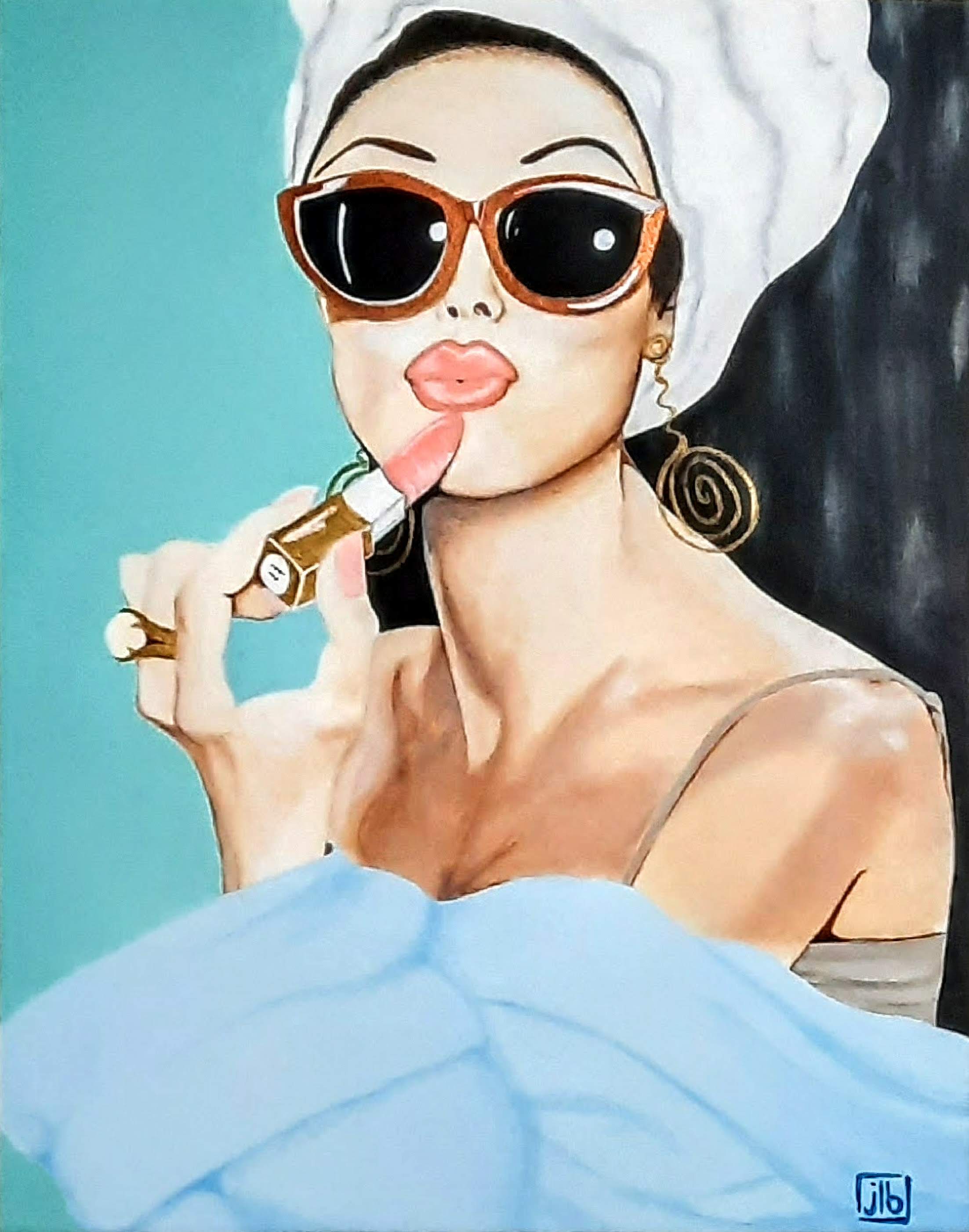 Capturing a moment that every girl understands- that rush of getting ready for a night out. the make-up, hair and clothes....everything must be just right! This comes matted and framed in a modern black metal frame to 14 X 12 and ready to hang