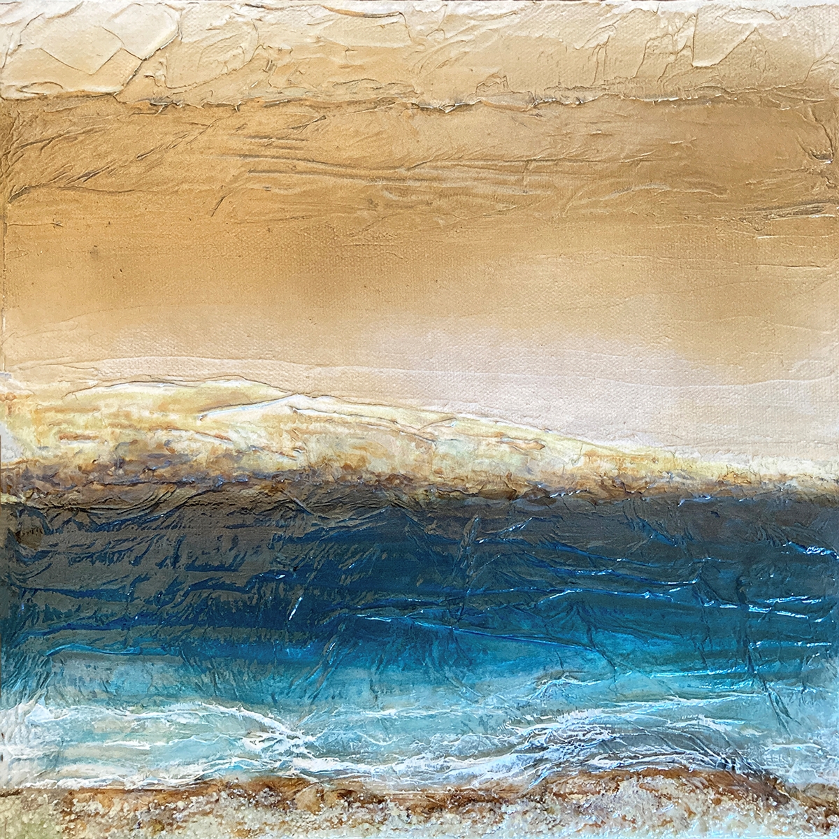 BY THE SEASHORE 1 Contemporary Coastal Landscape Seaside Painting Ocean Beach Fine Art Blue Gold