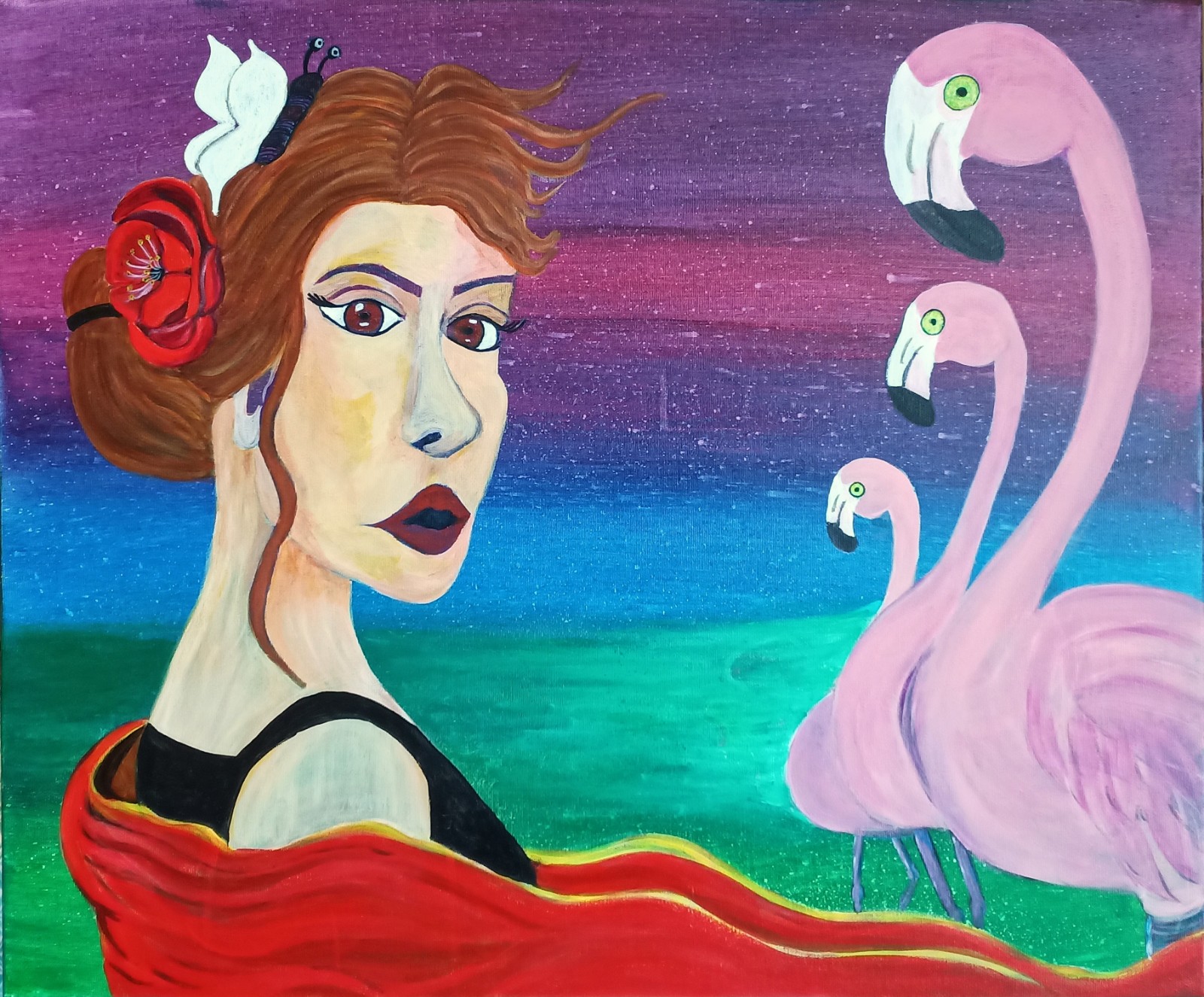Nothing expresses better the depths of a woman's passions and feelings than flamenco. Original artwork realized on gallery stretched canvas. Stamped on the back with the artist's signature logo. Sealed with varnish and ready to hang.