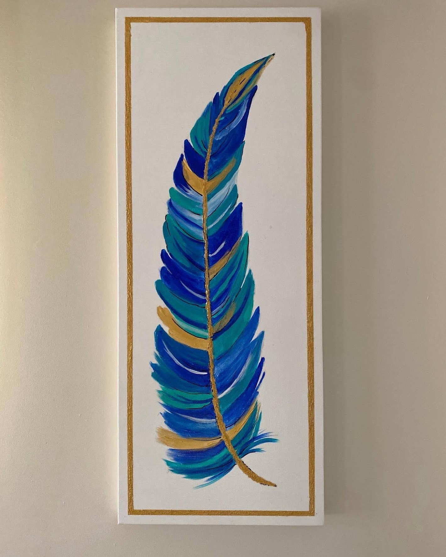 Embracing!! Colorful gold art feather art which will make your home space bright and colorful.