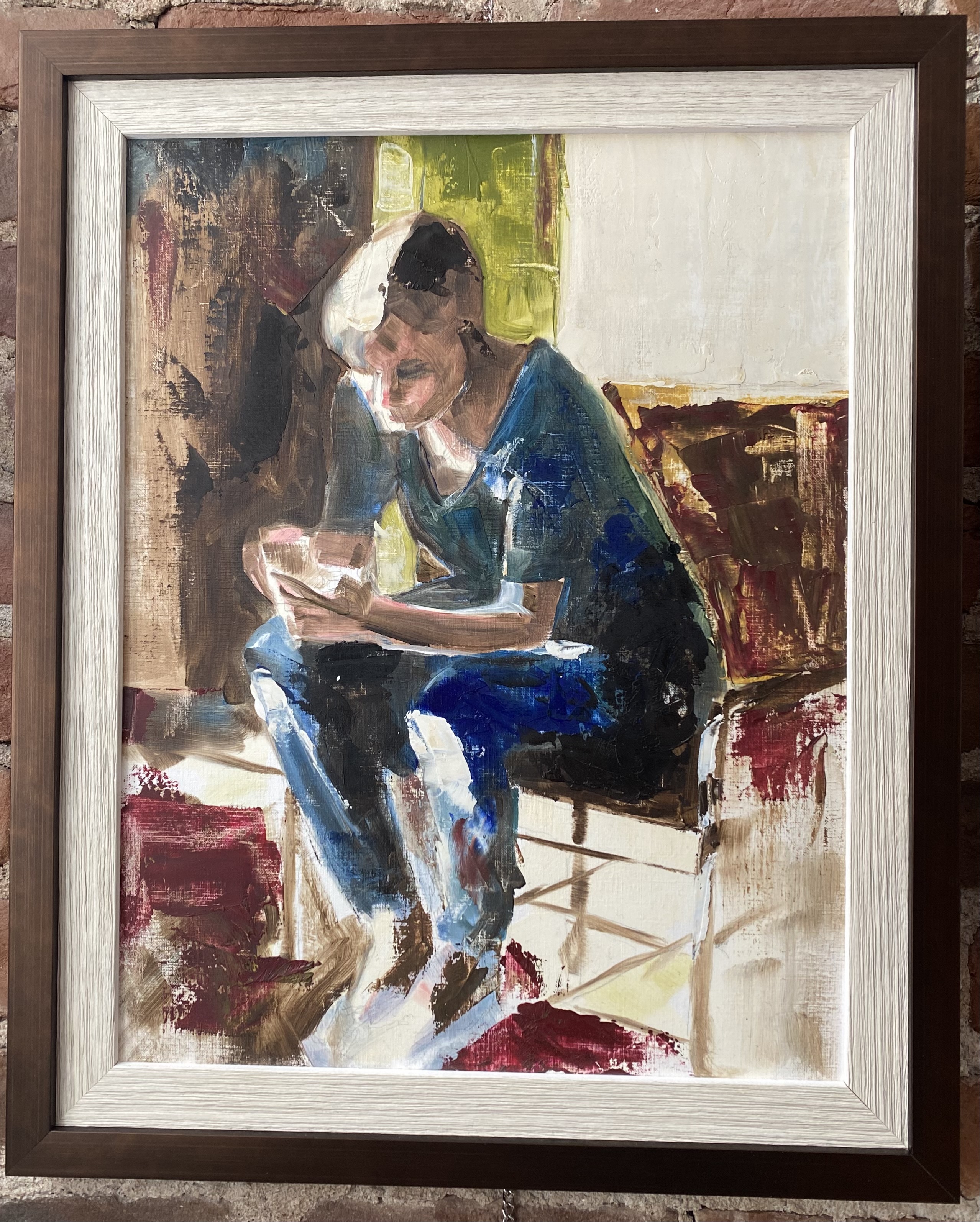« Scrolling Time » est une peinture à l’huile de 16 x 20 pouces, encadrée à 20 x 24 pouces. Portée par des gestes larges et expressifs, elle capte un moment d’introspection profonde. Réalisée sur Canva-Paper 290 g et encadrée avec soin, cette œuvre marie techniques traditionnelles et regard contemporain... Read more