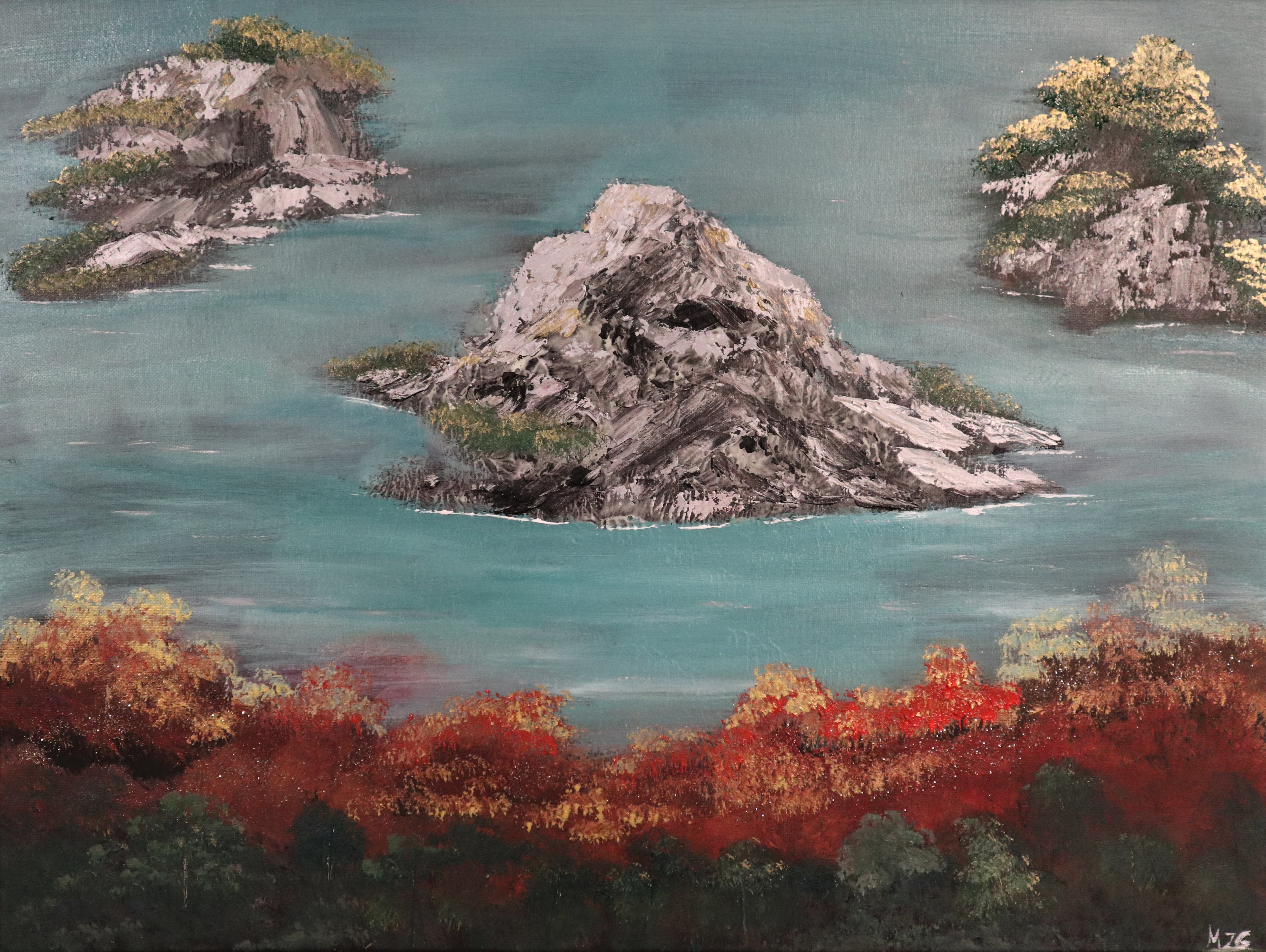 Wonderful combination of Fall and Summer colors into one painting. What secret do these islands hold? Imagine all the adventures you could have there. Imagination is the only limit.