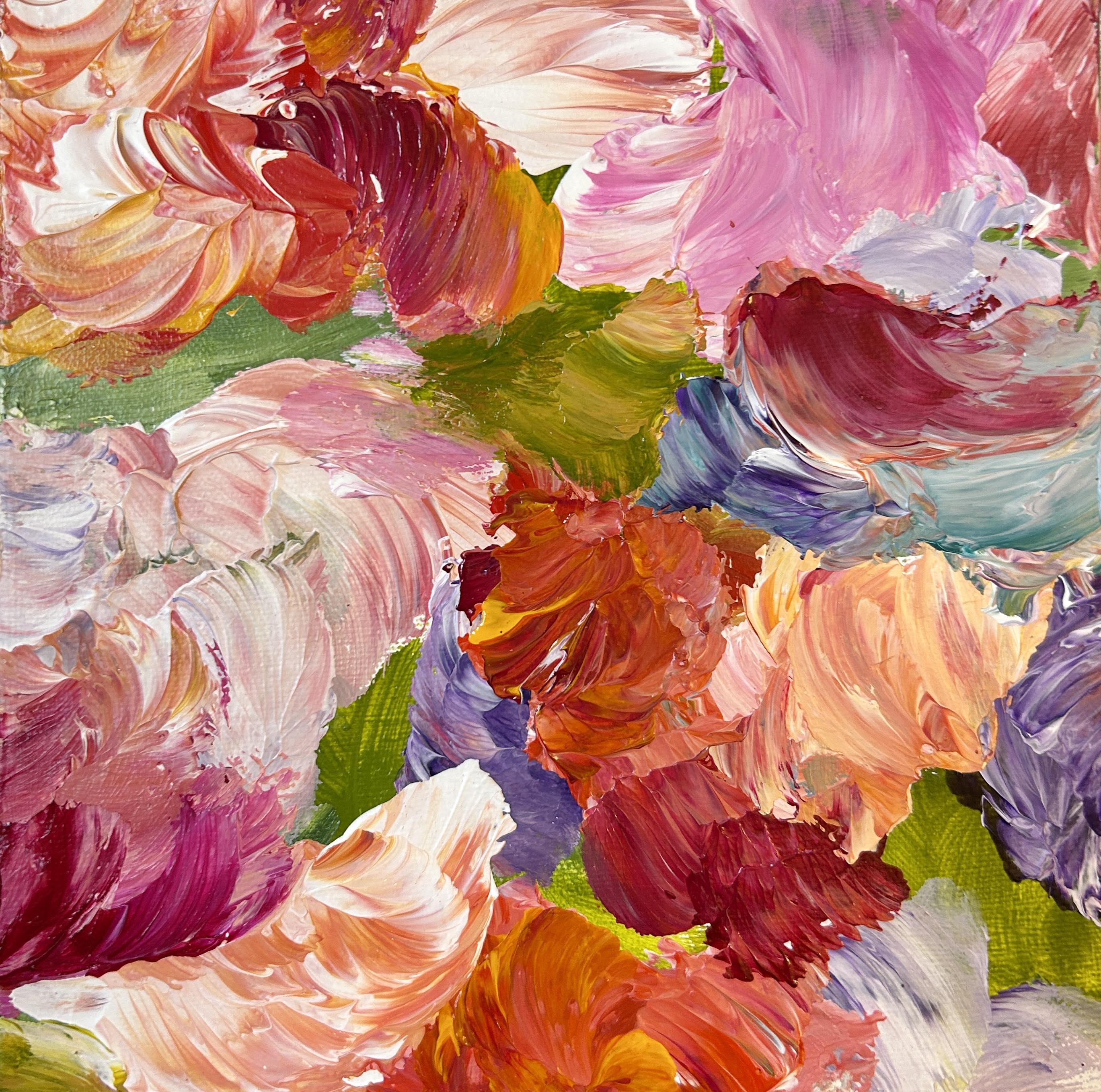 Original 8 by 8 inch acrylic painting on a 1.5 inch deep canvas by Ottawa-based artist Mireille Laroche. Toile originale de 8 pouces par 8 pouces et 1.5 pouce de profondeur peinte Ă  l'acrylique par Mireille Laroche d'Ottawa.