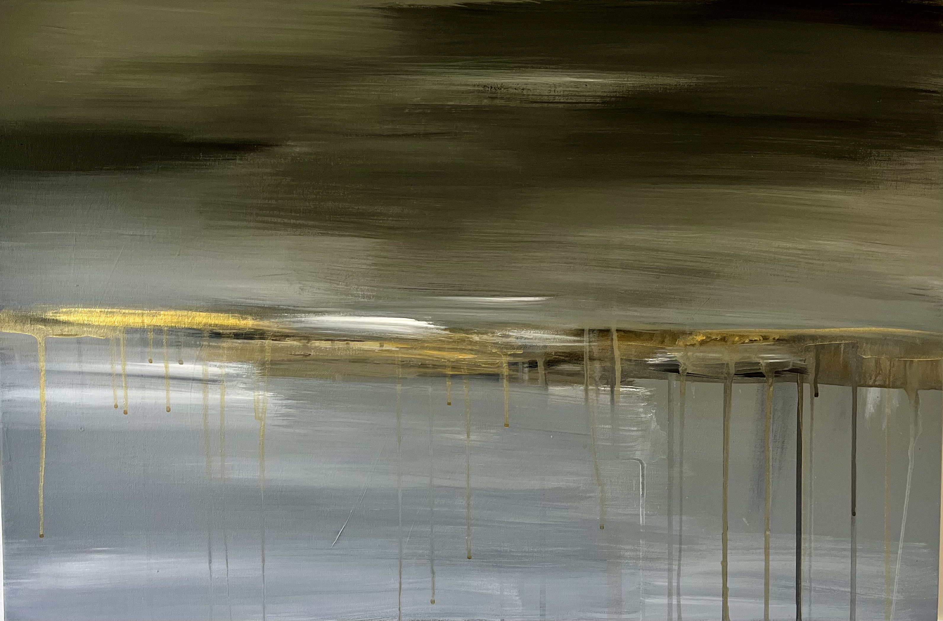 Créée avec vue sur la mer, les gouttelettes d’eau dorées font référence au reflet du soleil sur l’eau.