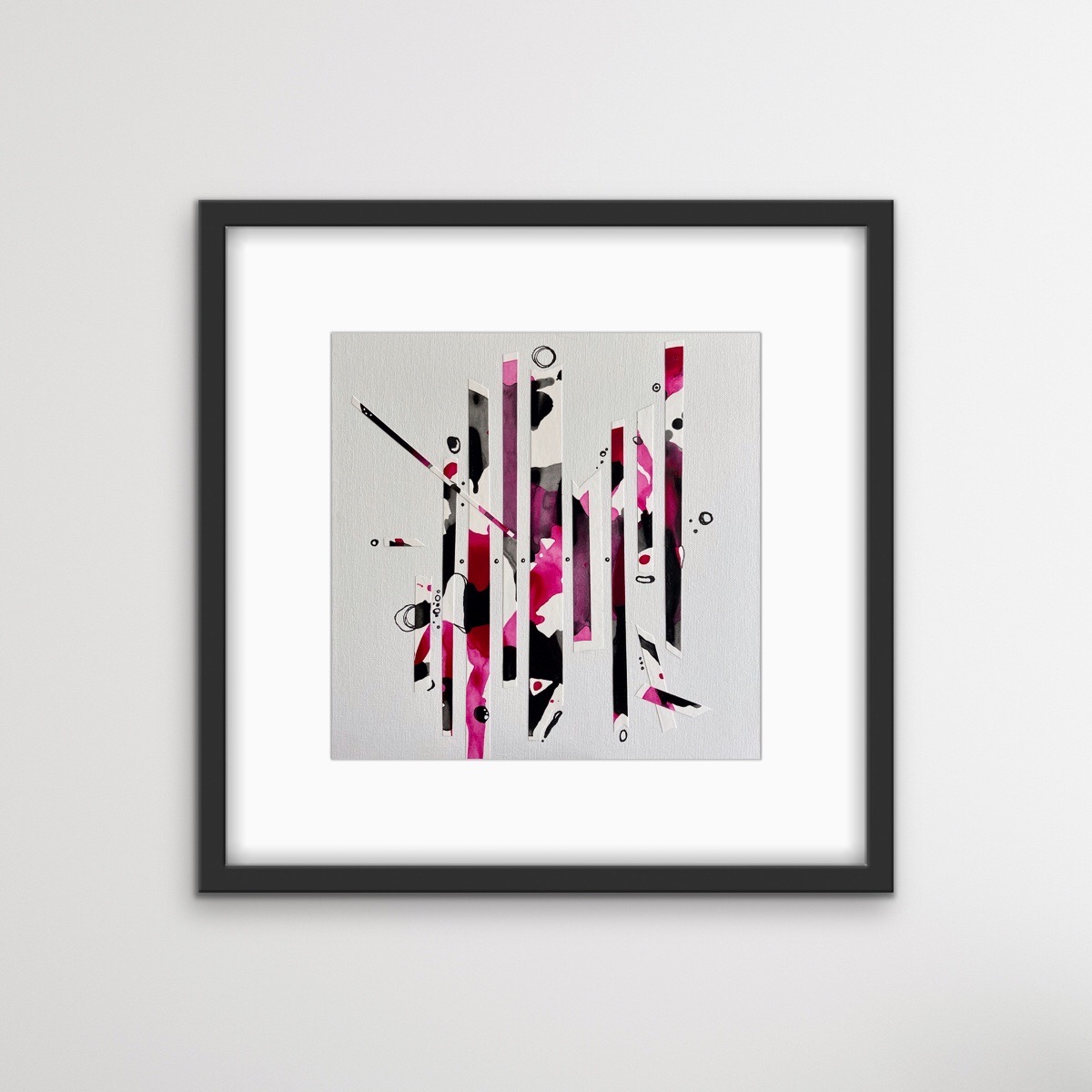 Framed 12”x12” multimedia collage on canvas