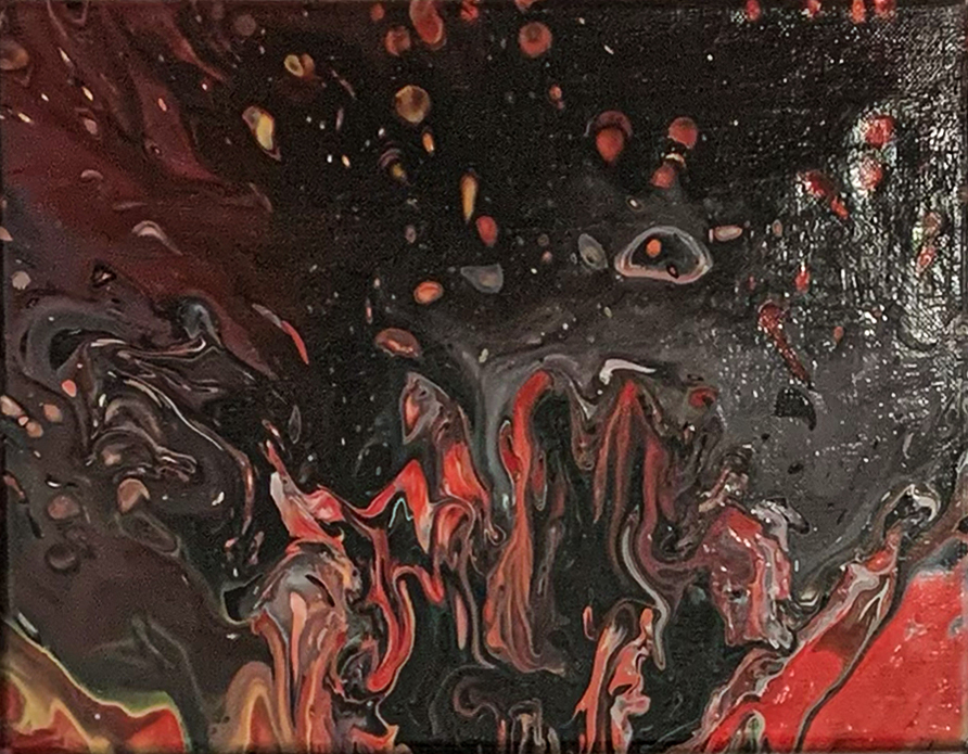 Novembre 2025, Québec. Oeuvre #09 —————————————- Acrylique fluide sur toile de 30 cm de largeur x 23 cm de hauteur.