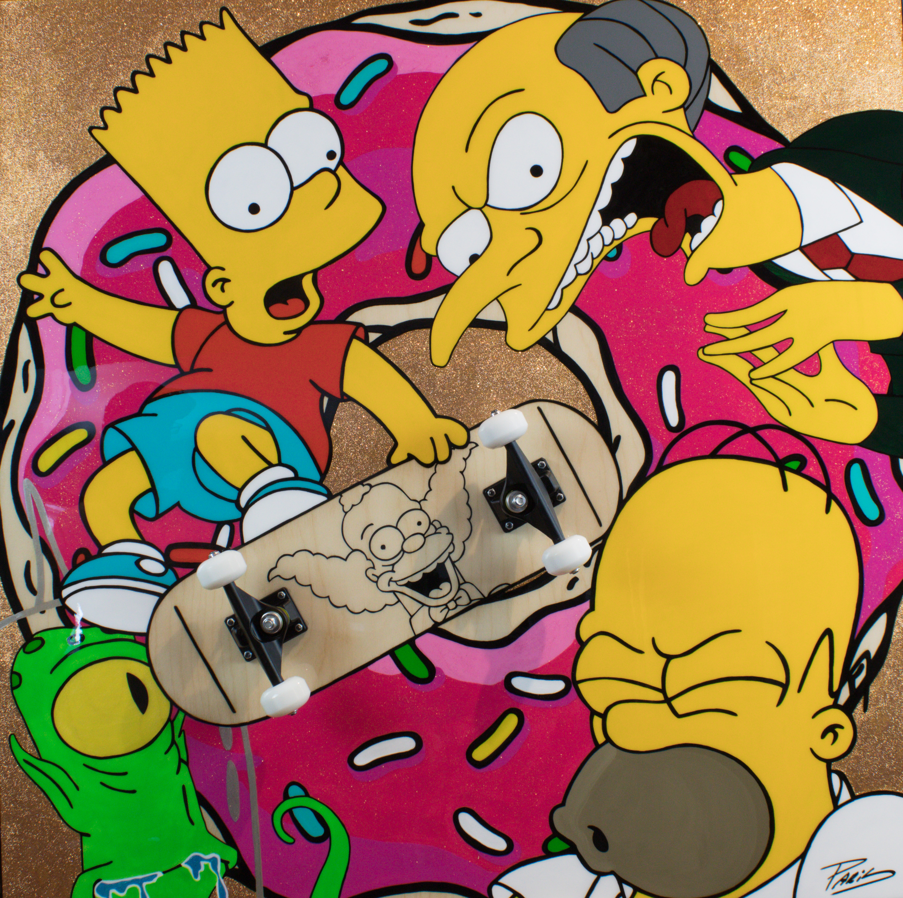 L'œuvre des Simpsons une pièce unique, intégrant les personnages emblématiques tels que Hommer, Bart et M. Burns dans un format de 40x40. La particularité réside dans l'ajout d'un vrai système de rouage pour skateboard directement intégré à la toile, le tout fini avec une couche d'époxy. Cette combinaison offre une... Read more