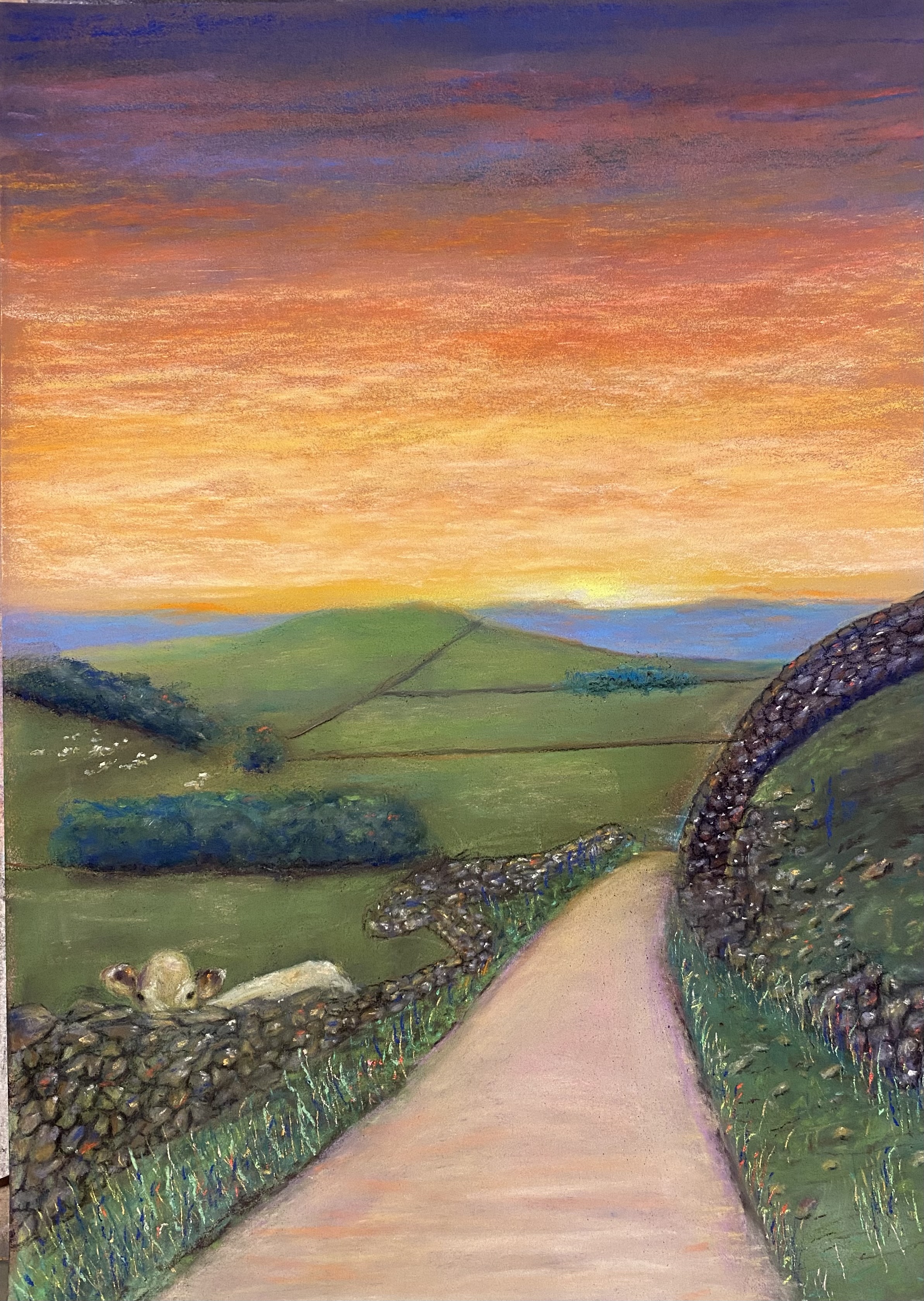 11x14 Soft Pastels on Pastelmat Original Signed on lower left hand corner A day in the English Meadow