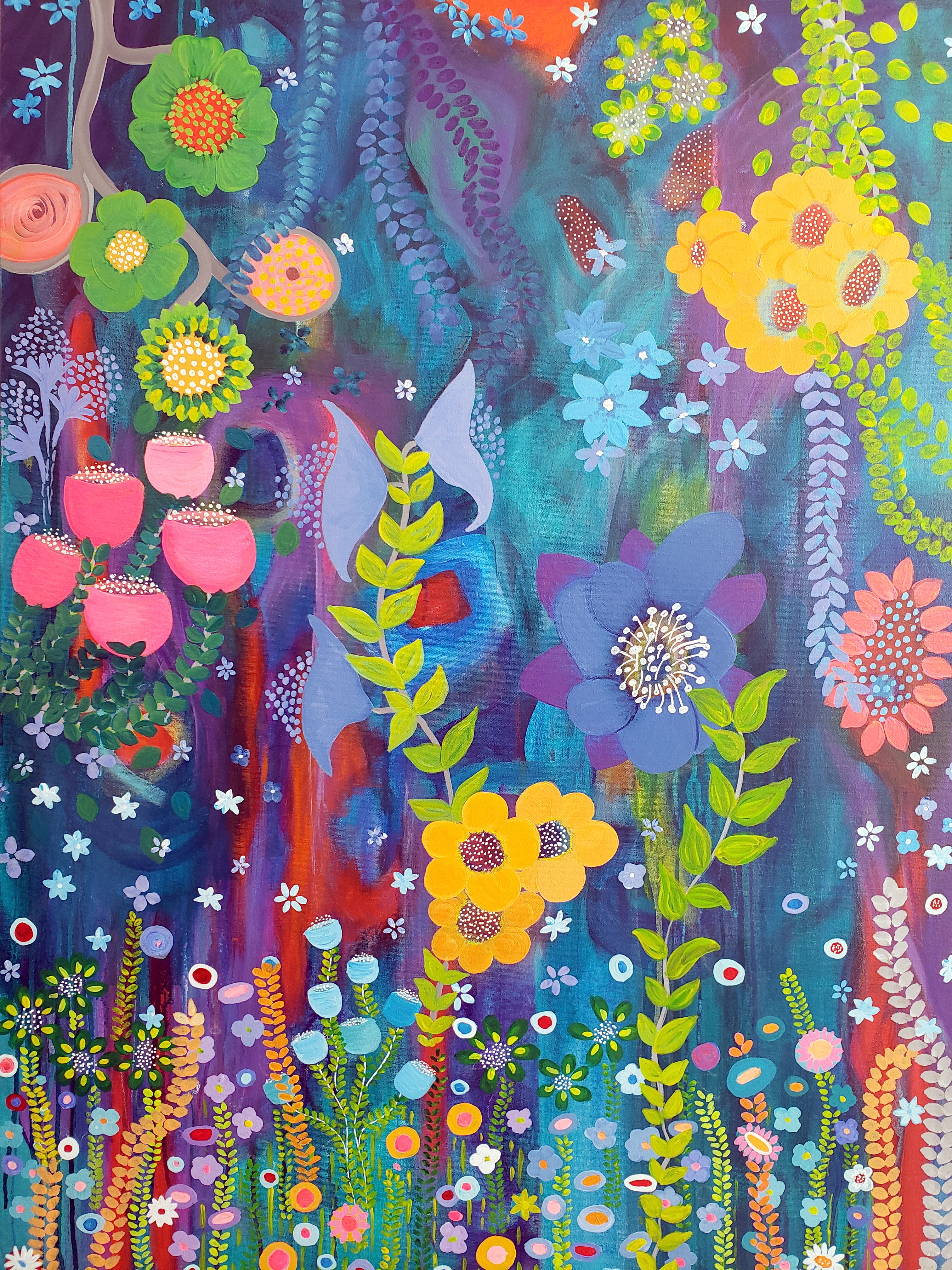 This painting is called Daisy Doolittle, part of my Florals body of work. Inspired by my passion for gardening and all things flora. Next to painting, gardening is my sweet-spot for calm and quiet, my place to solve problems and think creatively. I had loads of fun painting this one,... Read more