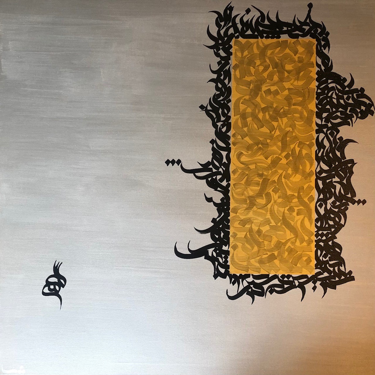 Persian Calligraphy, Black and Gold on Silver