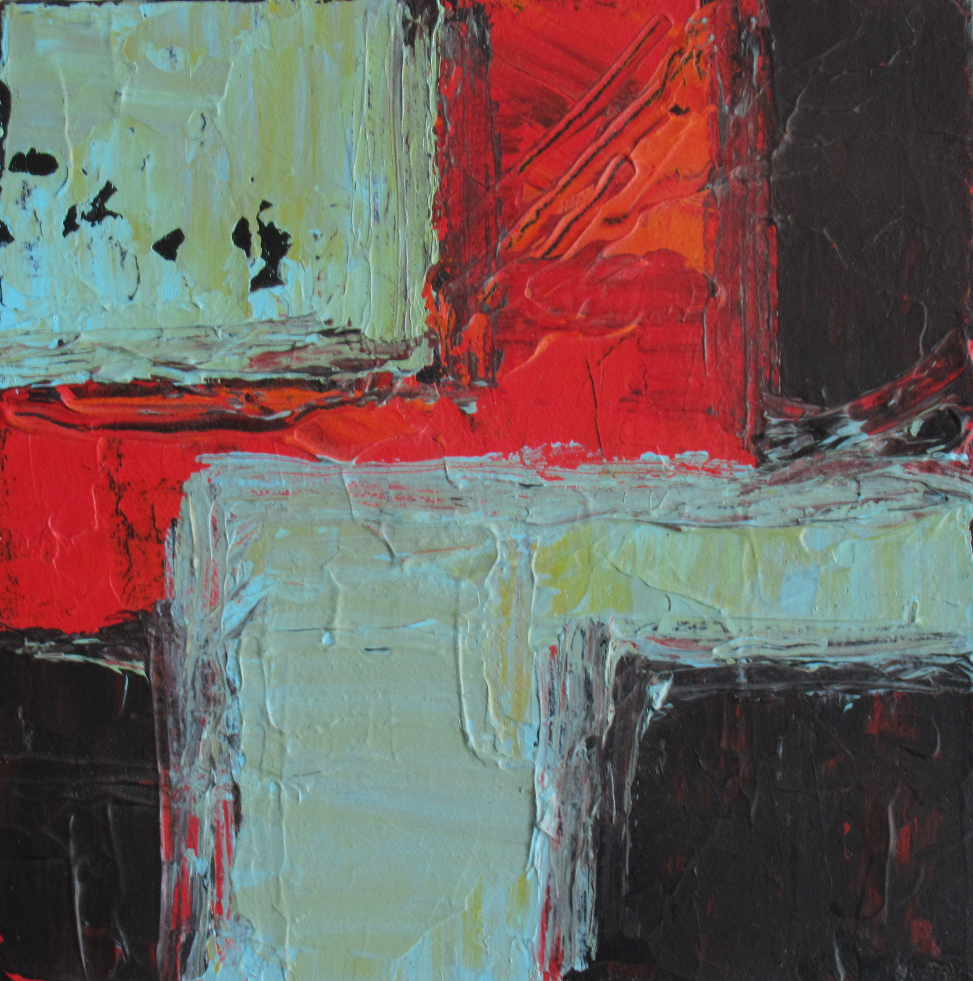 Oeuvre originale signée à l'endos Style: abstrait expressionniste Dimensions: 8 par 8 pouces sur toile galerie Médium: Acrylique Accent sur les couleurs, la spontanéité des gestes, la texture