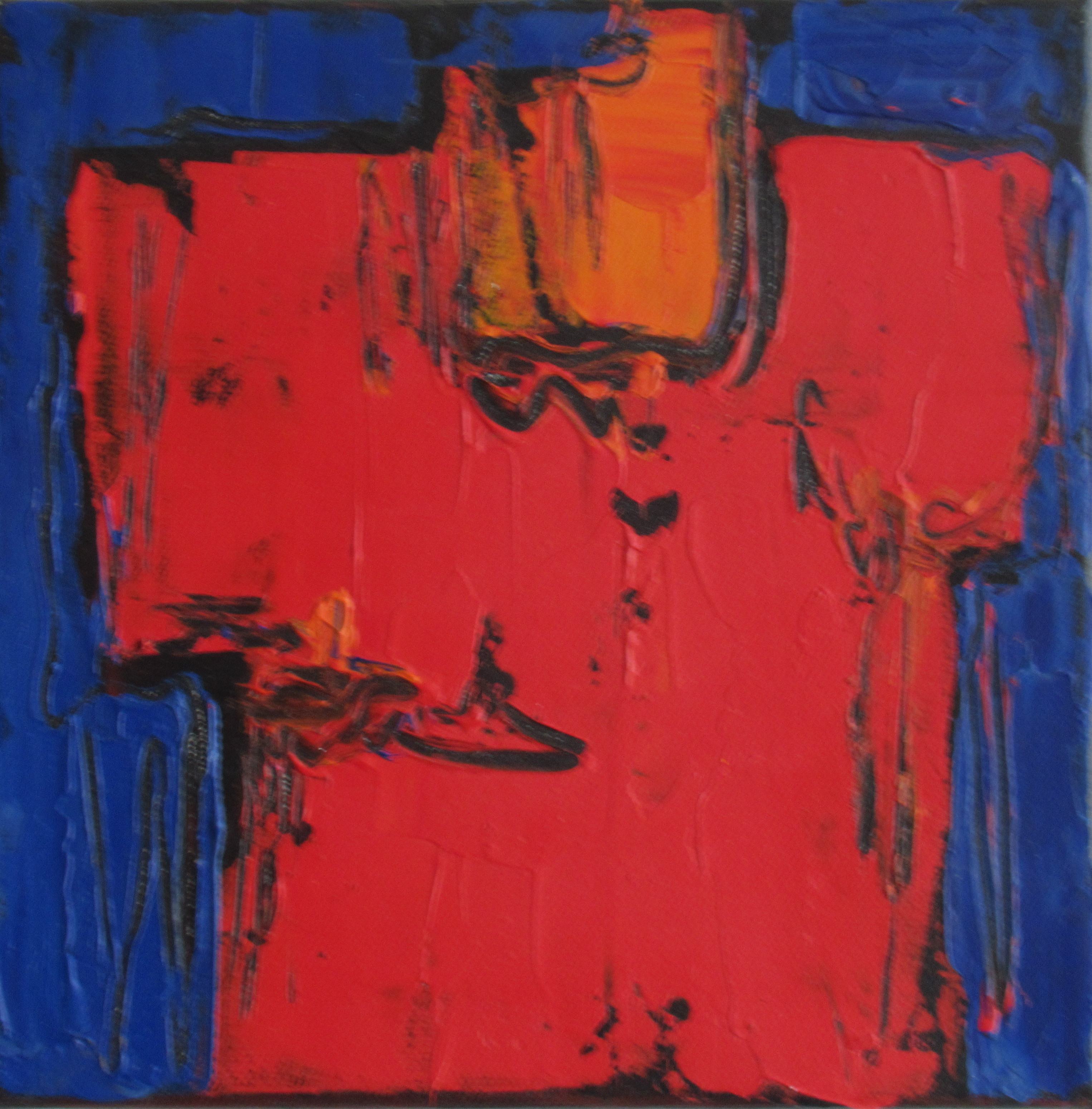 Tableau original signé à l'endos Dimensions : 8 par 8 pouces Médium: Acrylique Style: Abstrait expressionniste Accent sur les couleurs, la texture la spontanéité des gestes