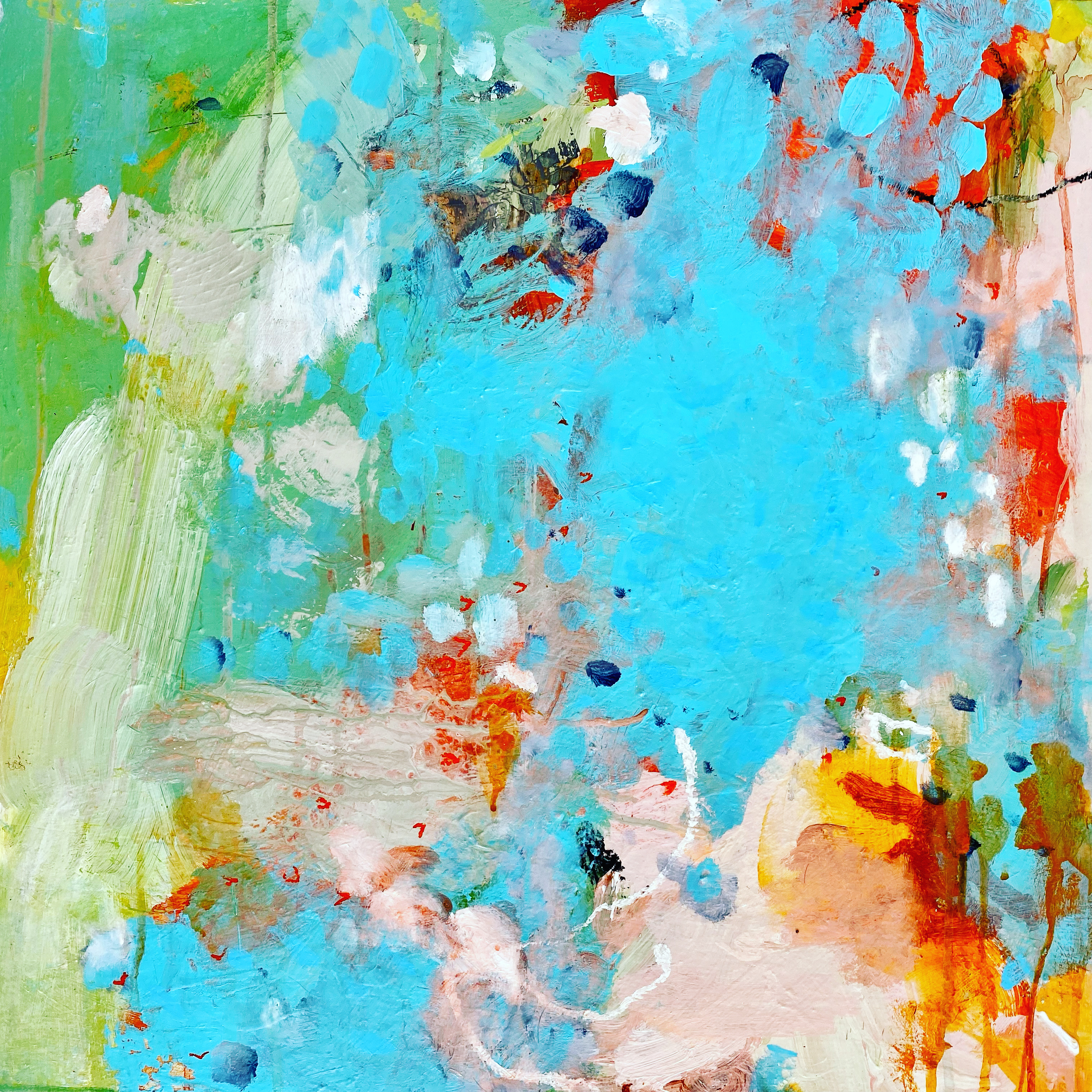 Promesse d'été de vacances et du bleu de la mer. Oeuvre non encadrée. Acrylique et mix medium sur panneau de bois.