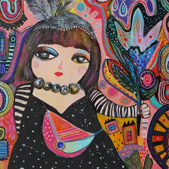 Coming from different cultural backgrounds our art is very versatile. We all love color and storytelling in our art making process. Every painting has a story as well as their creators. Material of our choice is acrylic and mixed media. Most of the paintings are framed. We also offer commissions and mural projects.