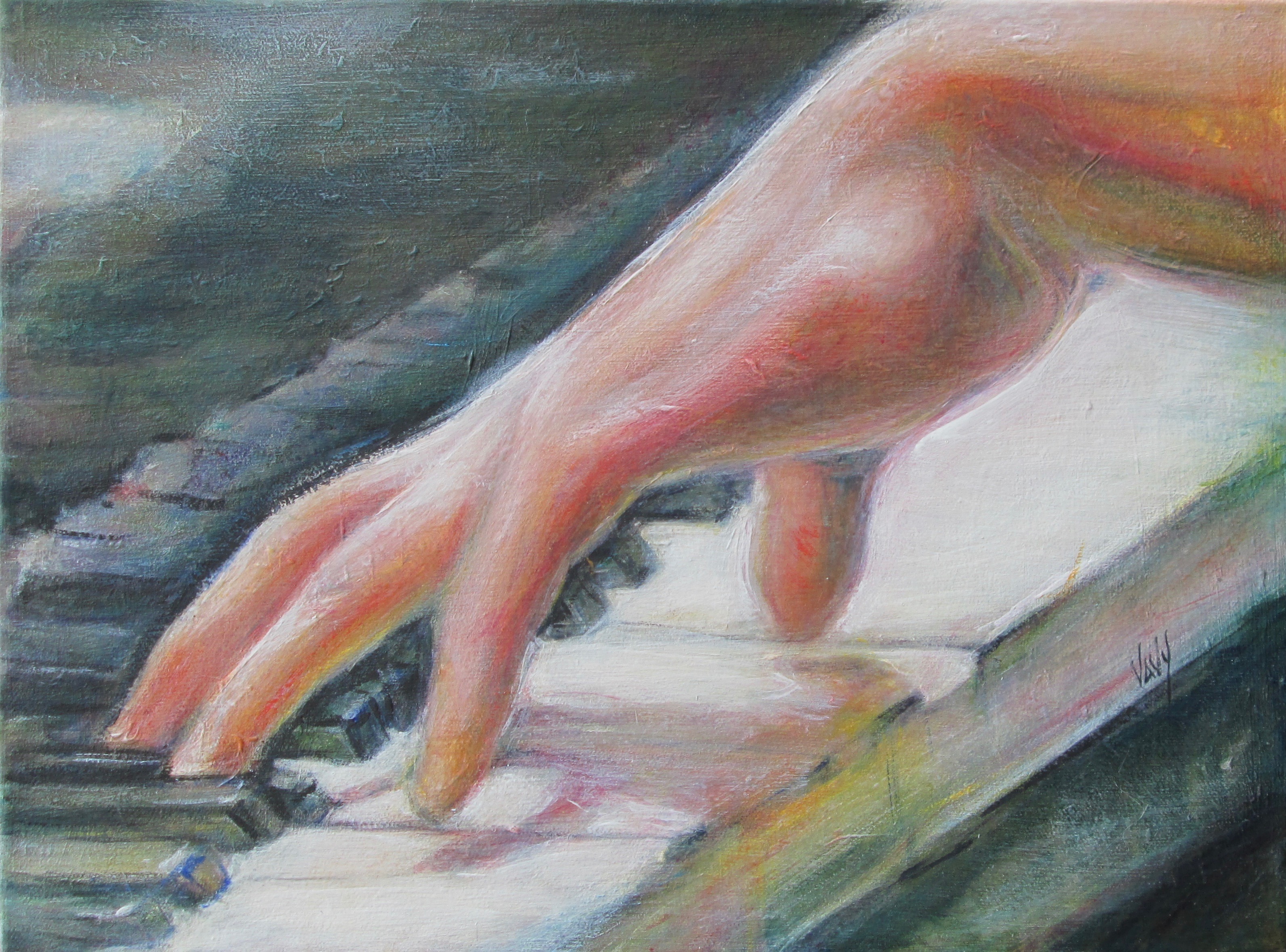 De la série Mains de musiciens - petit format Vue rapprochée de la main de femme jouant du piano.