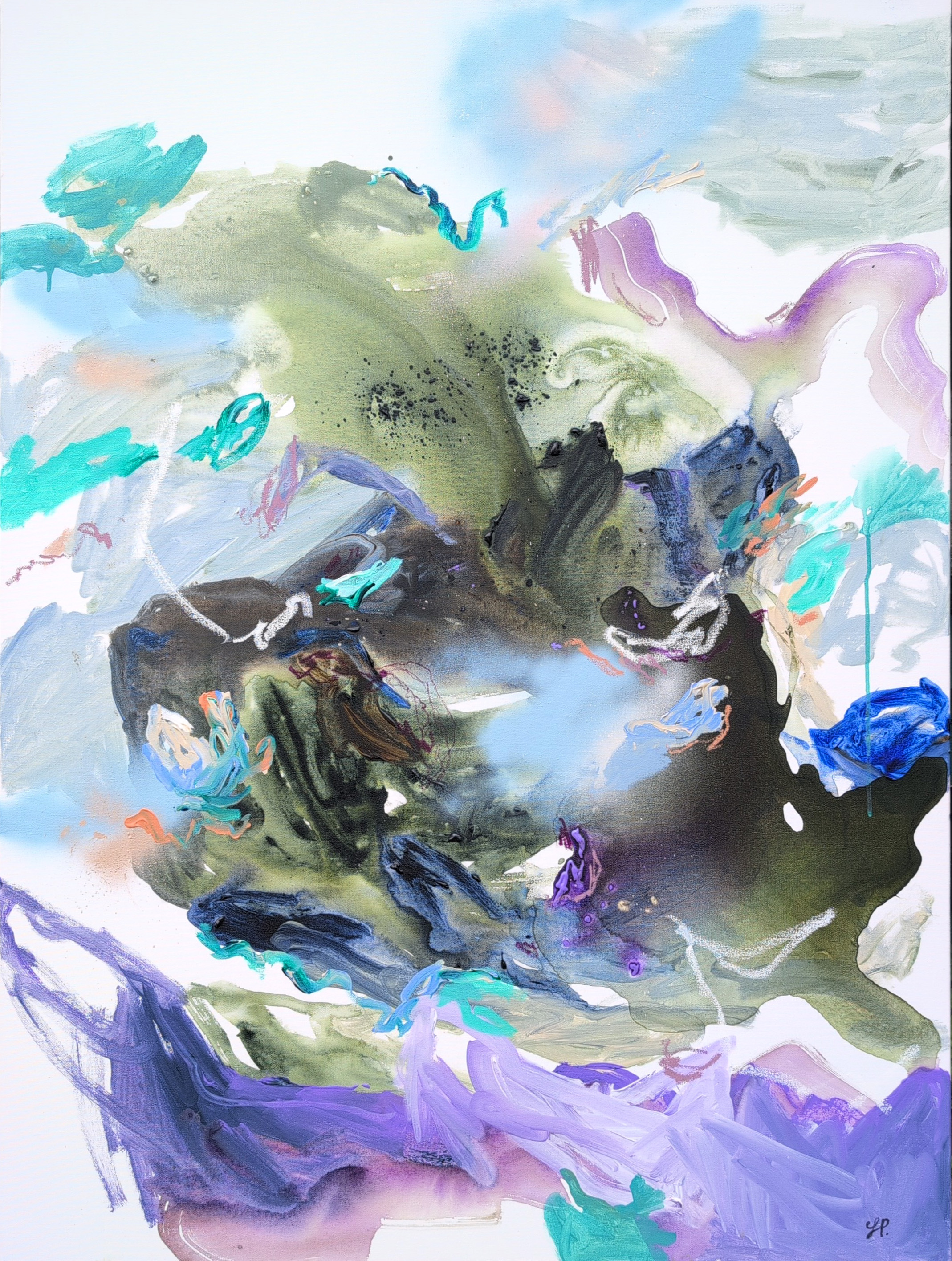Acrylique, peinture aérosol et pastel à l’huile sur toile 36”x48” Œuvre originale