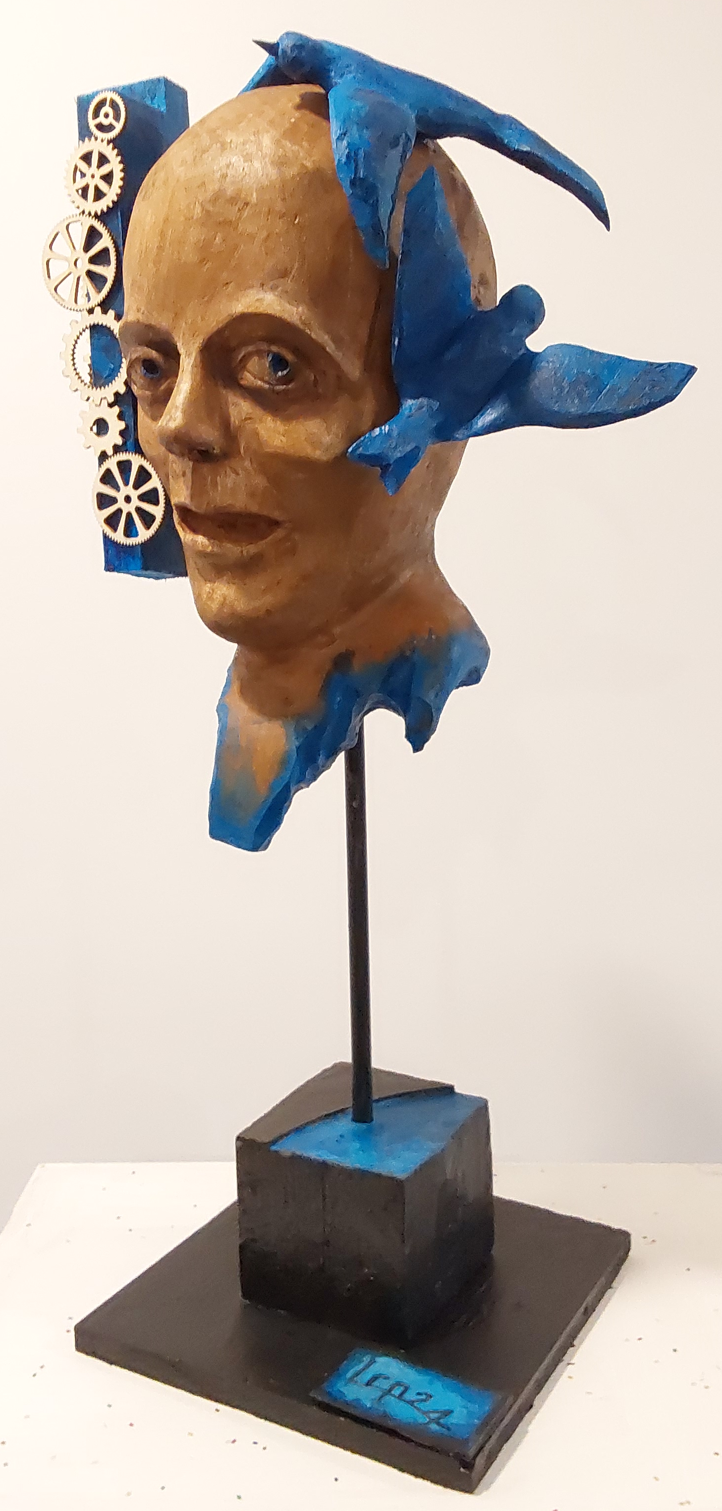 Hémisphères dans la création. Tilleul, base en pruche et épinette, métal, teinture, acrylique, 57.15 x 25.4 x 20.32 cm. Poids 1.81 kg 2024. SC2405 Pour connaitre la démarche et la vision de l'artiste concernant cette œuvre : https://luciencproulx.blogspot.com/ Hemispheres in creation. Basswood, hemlock and spruce base, metal, stain, acrylic, 57.15... Lire plus